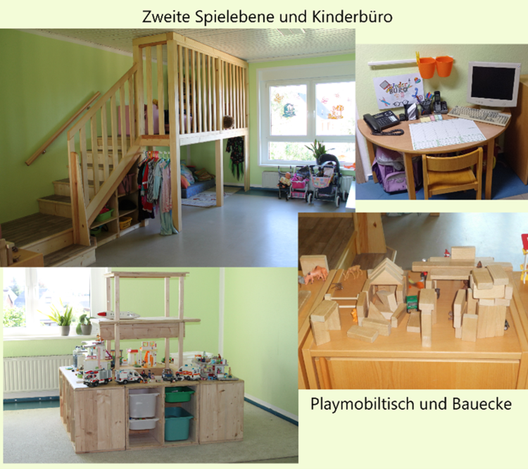 • Themenbezogene Spielecken, die den Kindern ermöglichen Kreativität und Fantasie zu entfalten.